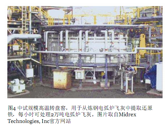 擠泥成球:這種方法是首先把濕度適中的粉料經(jīng)擠泥擠成棒狀小段,再把棒狀小段送進(jìn)球化碗。球化碗中有一個(gè)旋轉(zhuǎn)的摩擦盤,小泥棒在盤上扭曲變形,并互相撞擊,zui后形成球粒。擠泥成球法適用于制造單一結(jié)構(gòu)的致密實(shí)心球,但也可通過在泥料中加入固體造孔物質(zhì)制造多孔球或采用同軸擠出法制造芯殼結(jié)構(gòu)的球粒22。目前已有擠泥成球設(shè)備的生產(chǎn)能力為600公斤/h23。 流化床成球:在該方法中,料漿成球在流化床上進(jìn)行。成球的機(jī)理包括霧滴團(tuán)聚、表面涂覆和加熱干燥三個(gè)基本過程24。所謂霧滴團(tuán)聚就是由多個(gè)經(jīng)噴頭霧化的微小液滴直接結(jié)合。所謂表面涂覆就是把霧化液滴噴在粒種的表面上,形成涂層,隨著噴涂的進(jìn)行,涂層逐漸變厚,球粒逐漸長大。調(diào)節(jié)操作條件,可控制成球的主導(dǎo)機(jī)理。比如使用較稠的料漿,成球機(jī)理由霧滴團(tuán)聚主導(dǎo);而向流化床中加入粒種并使用較稀的料漿,成球機(jī)理則由表面涂覆主導(dǎo)。以霧滴團(tuán)聚主導(dǎo)過程適用于生產(chǎn)微細(xì)球粒(<0.25mm),球徑分布較寬。以表面涂覆主導(dǎo)的過程得到的球粒結(jié)構(gòu)致密而且粒度均勻。目前已有的流化床成球設(shè)備的生產(chǎn)能力可達(dá)20噸/h25。 (3) 燒成 回轉(zhuǎn)窯: 回轉(zhuǎn)窯已被廣泛用于高溫?zé)品蹱詈土畈牧稀S吞锾樟I盁Y(jié)的例子表明,若燒后料的比重大于3,適宜在回轉(zhuǎn)窯中燒結(jié)的料球粒度可小至0.4 mm26。因?yàn)榇罅6攘锨蜉^重而且與窯壁的接觸面積較小,它們在窯壁上沉積結(jié)圈的可能性也隨之減小。大球的較大重量還具有抵抗逆向窯氣把它們回吹的能力。回吹的避免使得料球在窯內(nèi)的停留時(shí)間分布變窄,有利于提高燒成品的質(zhì)量,減小燒成品的性能波動(dòng)。 環(huán)形轉(zhuǎn)盤窯: 環(huán)形轉(zhuǎn)盤窯也是一種連續(xù)窯爐。在燒成過程中,物料被置于爐盤上,隨著轉(zhuǎn)盤的轉(zhuǎn)動(dòng)經(jīng)歷預(yù)熱、燒成和冷卻三個(gè)區(qū)域。轉(zhuǎn)盤窯可用電加熱,也可用燃?xì)庾髦苯踊蜷g接加熱,以滿足具體的熱工需要。傳統(tǒng)上這種窯爐被用于成形體的熱處理,如盤條、齒輪、軸承等。它們后來被引進(jìn)還原鐵的生產(chǎn)過程27。圖4所示的是一臺(tái)用于處理電弧爐飛灰的中試轉(zhuǎn)盤窯,其年處理量是2萬噸。然而,另有年處理量為19萬噸電弧爐飛灰的轉(zhuǎn)盤窯也已投用28。與回轉(zhuǎn)窯中燒結(jié)不同,物料在轉(zhuǎn)盤窯中不對(duì)轉(zhuǎn)盤作相對(duì)運(yùn)動(dòng)。燒成的物料可用耐火刮板卸出。粘連的爐盤上的物料,只要不是很結(jié)實(shí),可被刮板刮掉。爐中的燃燒器可被適當(dāng)分布,以弱化逆流窯氣的強(qiáng)度,從而避免被窯氣回吹。轉(zhuǎn)盤窯可被考慮用作燒結(jié)小粒度、有粘連性的或輕質(zhì)球形耐火骨料。